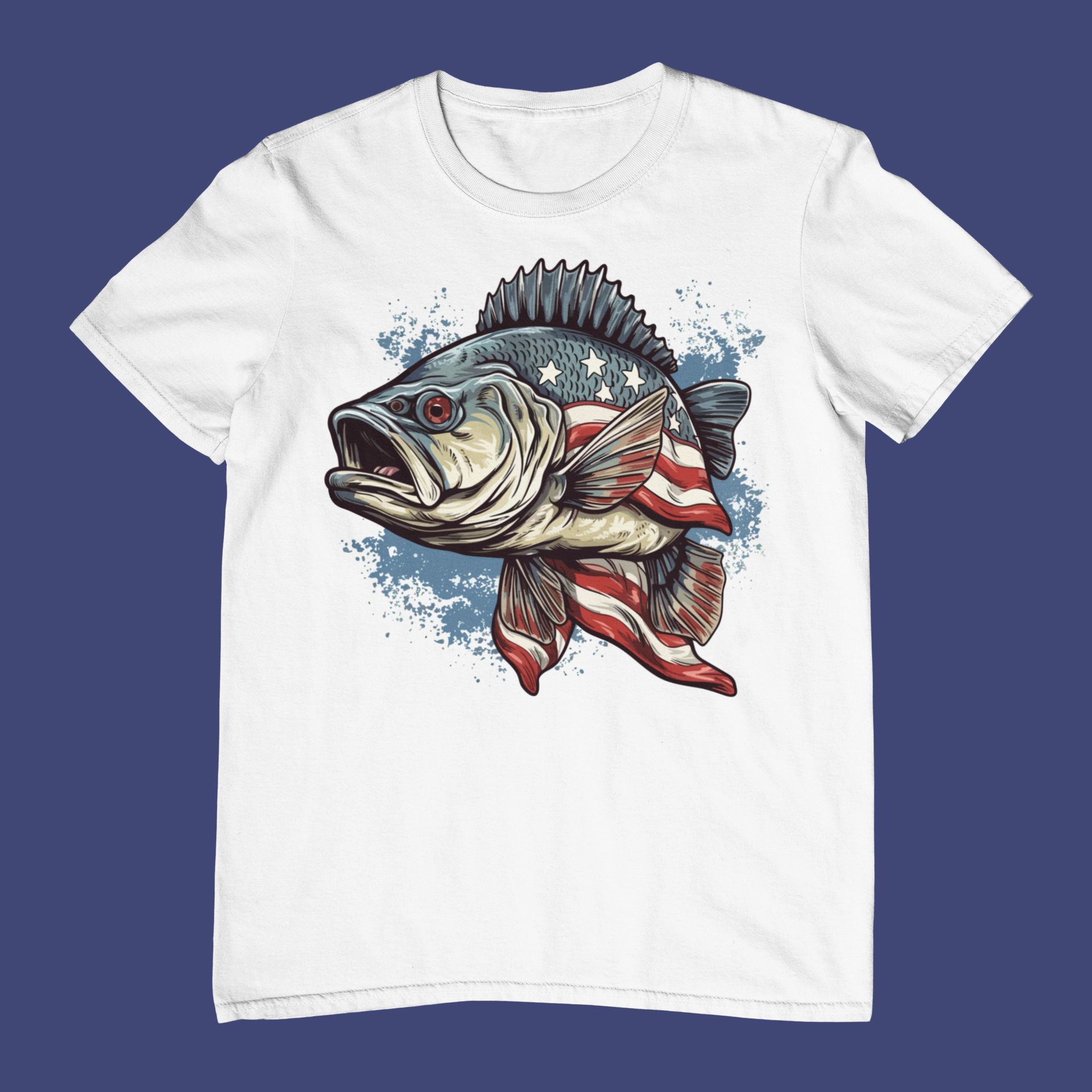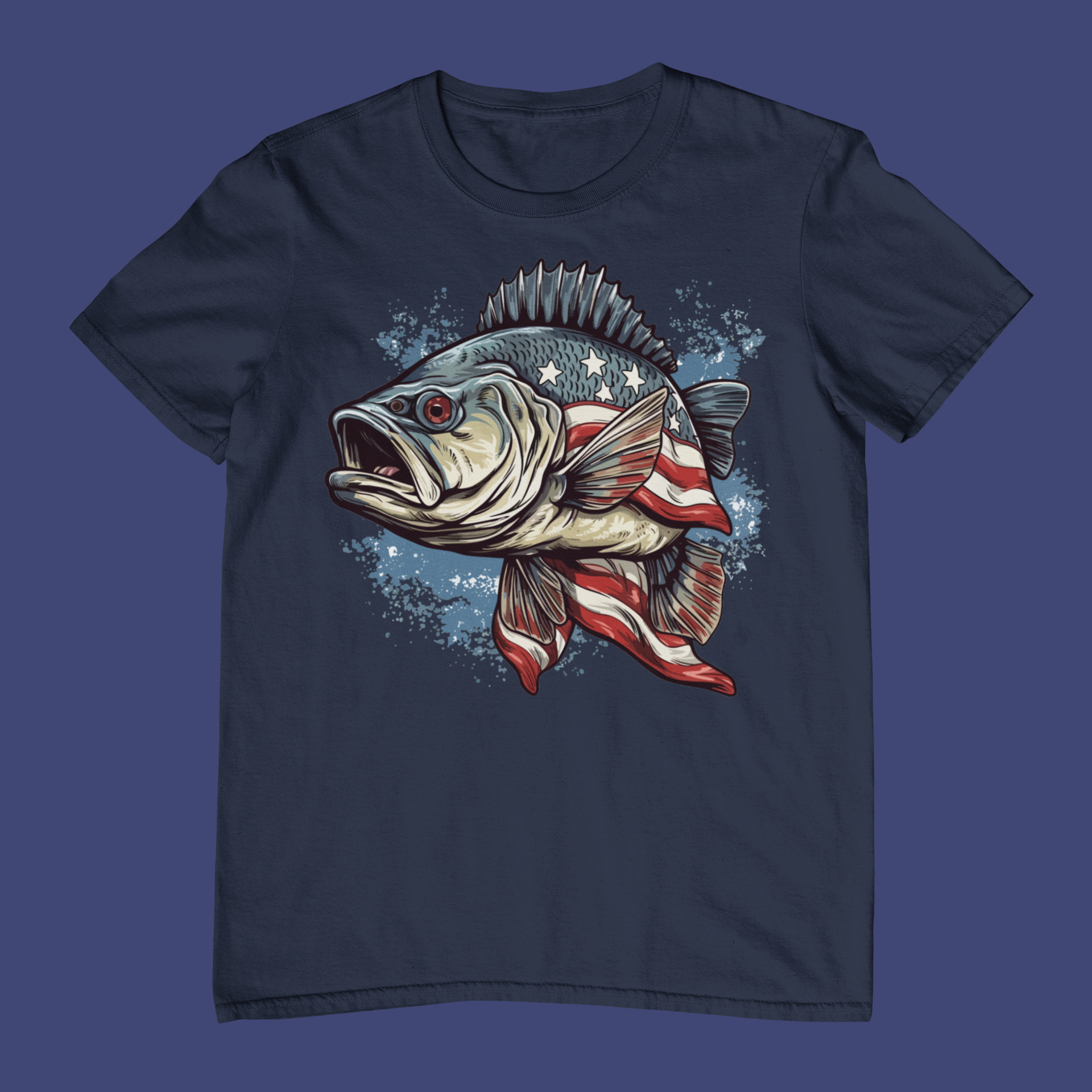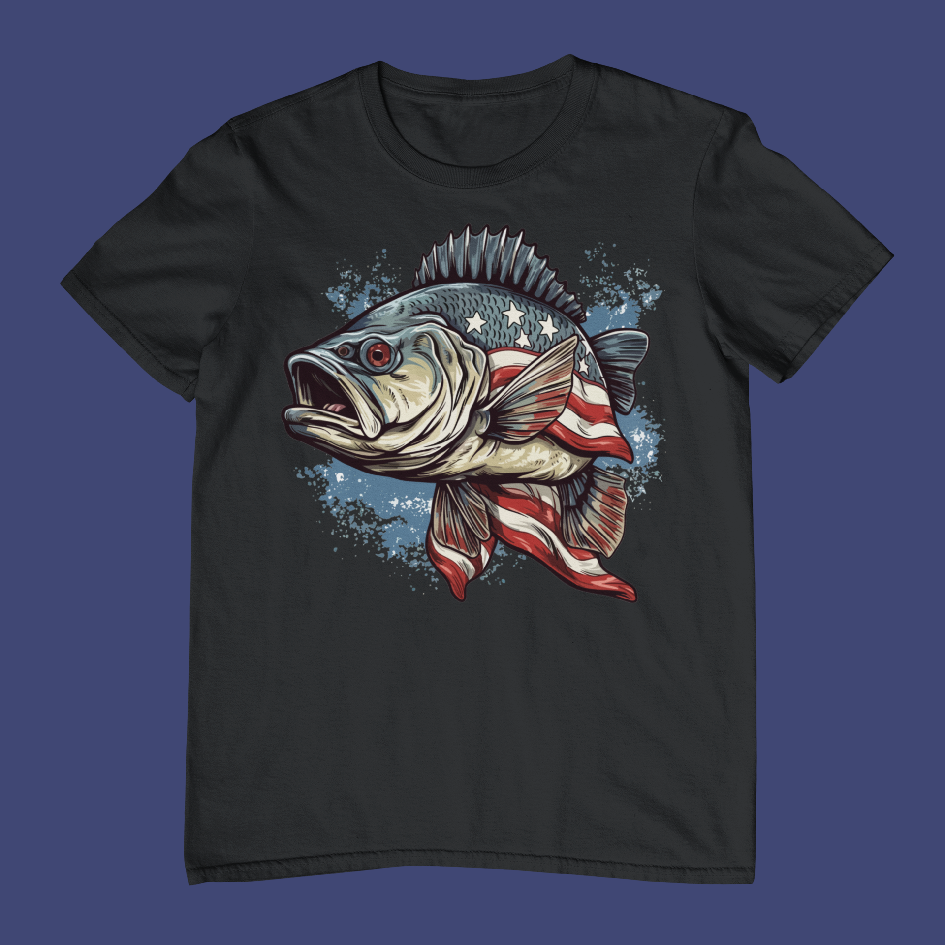 Introducing our "Bass Patriot" t-shirt because nothing says "America" like a badass bass draped in the stars and stripes. This shirt is the ultimate symbol of patriotism and angling prowess. So, gear up, grab your fishing rod, and slip into this "Bass Patriot" t-shirt. Let everyone know that you're not just a skilled angler, but a true American badass.