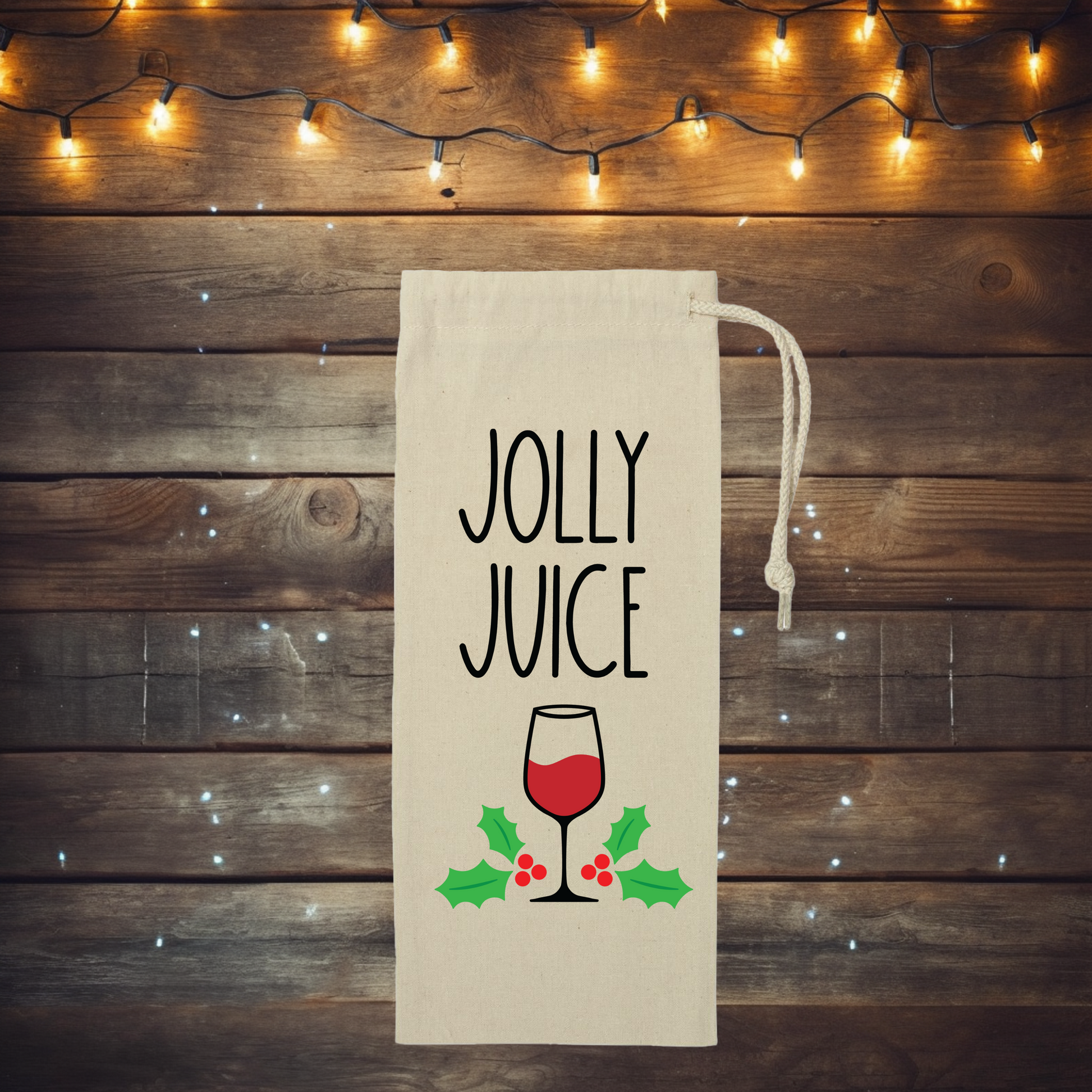 The Jolly Juice wine gift bag is the ultimate way to serve up some holiday cheer. Made from 100% cotton canvas, this bag is built to carry your favorite bottle with ease and a side of sass. With its bold "Jolly Juice" message, it's perfect for those who know the holiday season is all about good wine and good times. Whether you're giving it as a gift or bringing it to a celebration, this bag brings the fun to any party. Let the festivities flow!