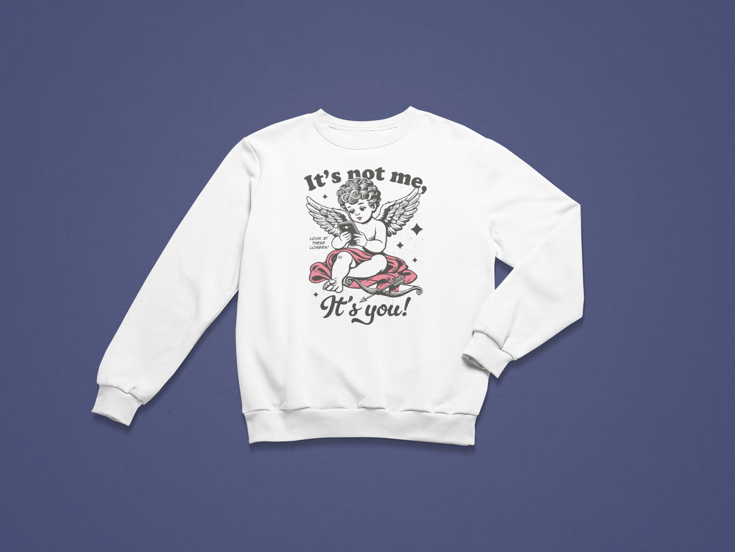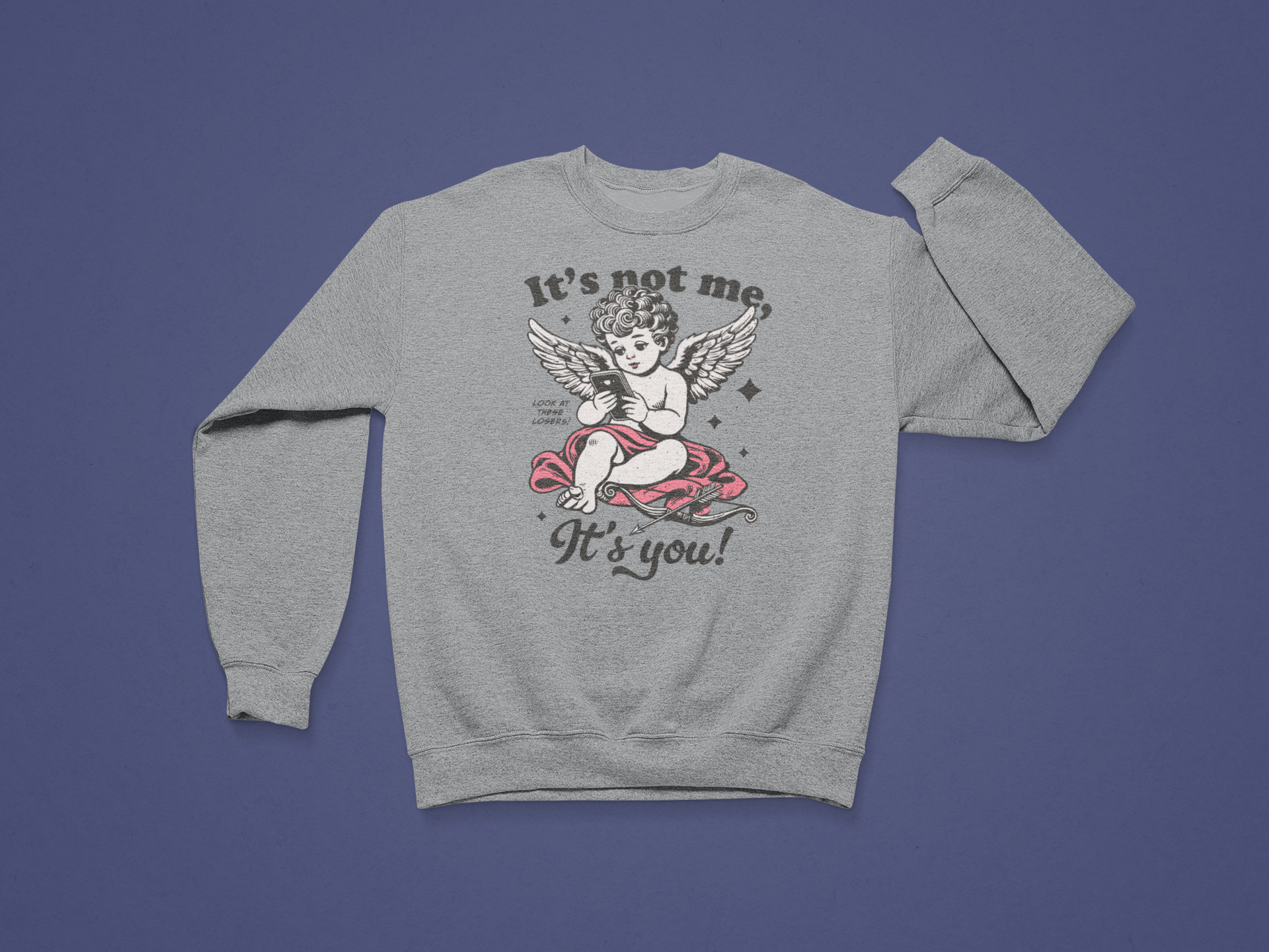 This one's for the unapologetic truth-tellers. "No Love Lost" flips the script on cliché breakups with its bold message: "It's not me, it's you." Featuring a cheeky Cupid holding the receipts of romantic regrets, this crewneck is all about wearing your honesty like a badge of honor. Perfect for dodging drama, calling out loser, and staying cozy while you do it. Because sometimes, the love's gone-and you're not mad about it.
