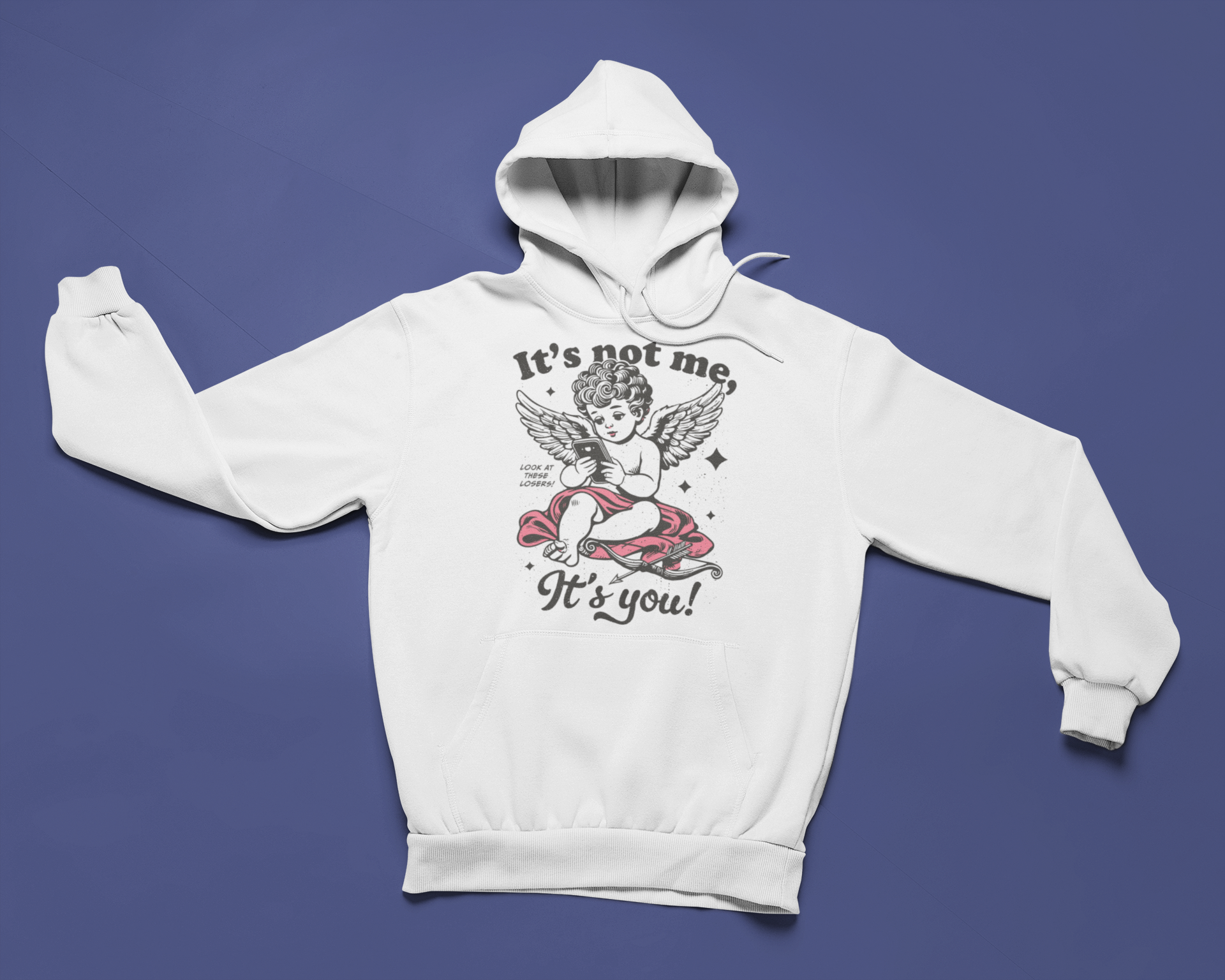 This one's for the unapologetic truth-tellers. "No Love Lost" flips the script on cliché breakups with its bold message: "It's not me, it's you." Featuring a cheeky Cupid holding the receipts of romantic regrets, this hoodie is all about wearing your honesty like a badge of honor. Perfect for dodging drama, calling out loser, and staying cozy while you do it. Because sometimes, the love's gone-and you're not mad about it.