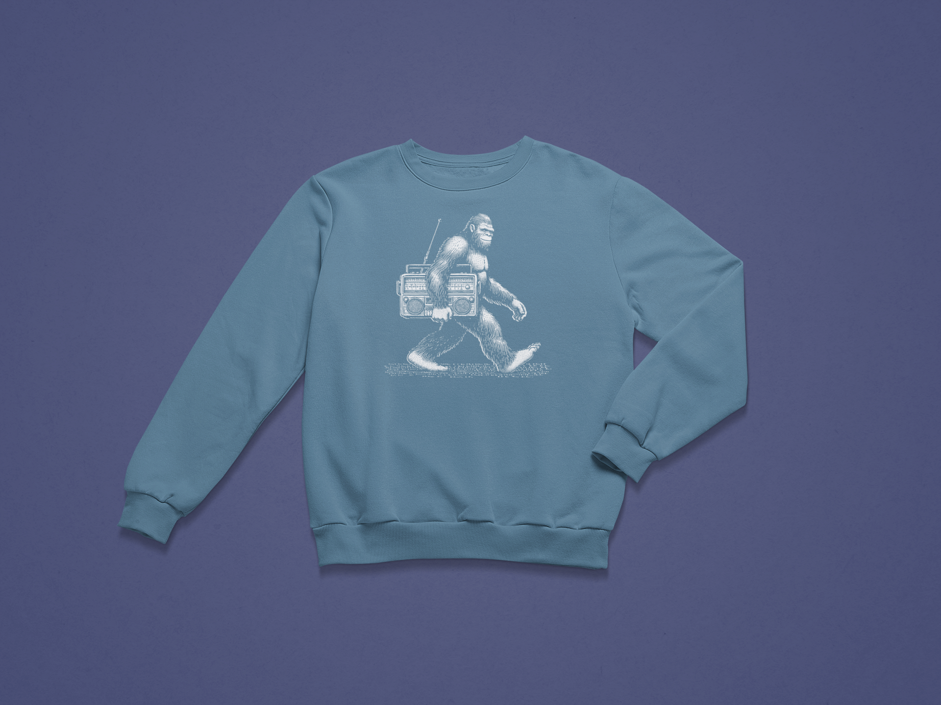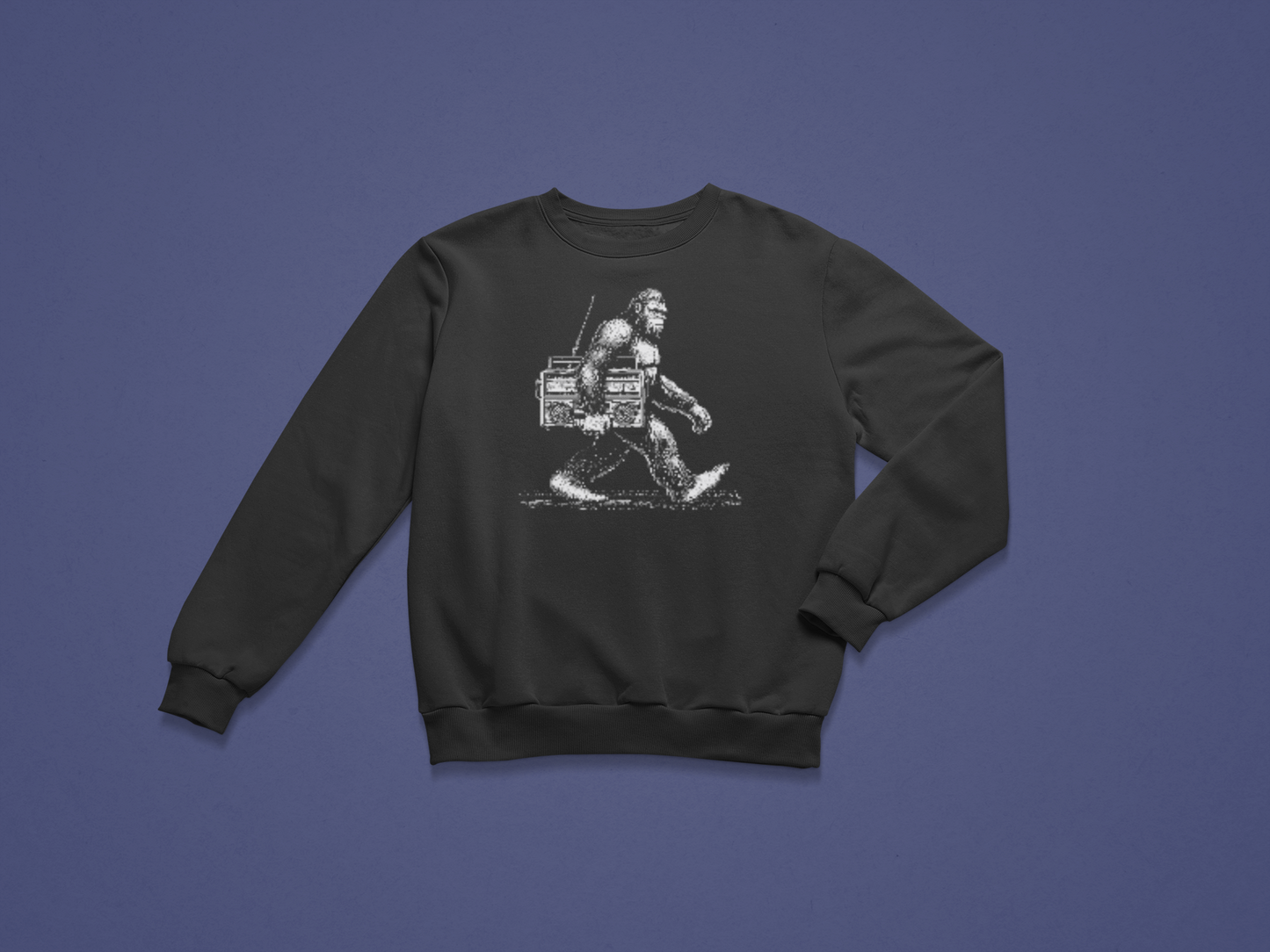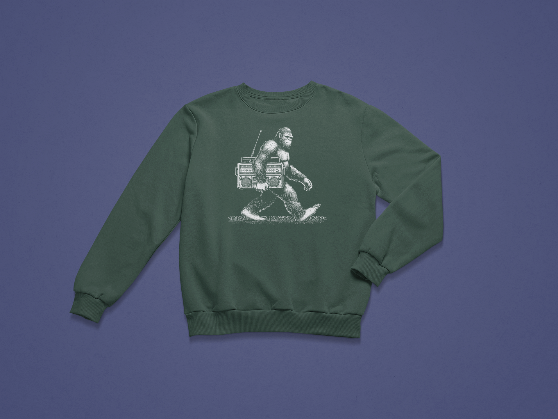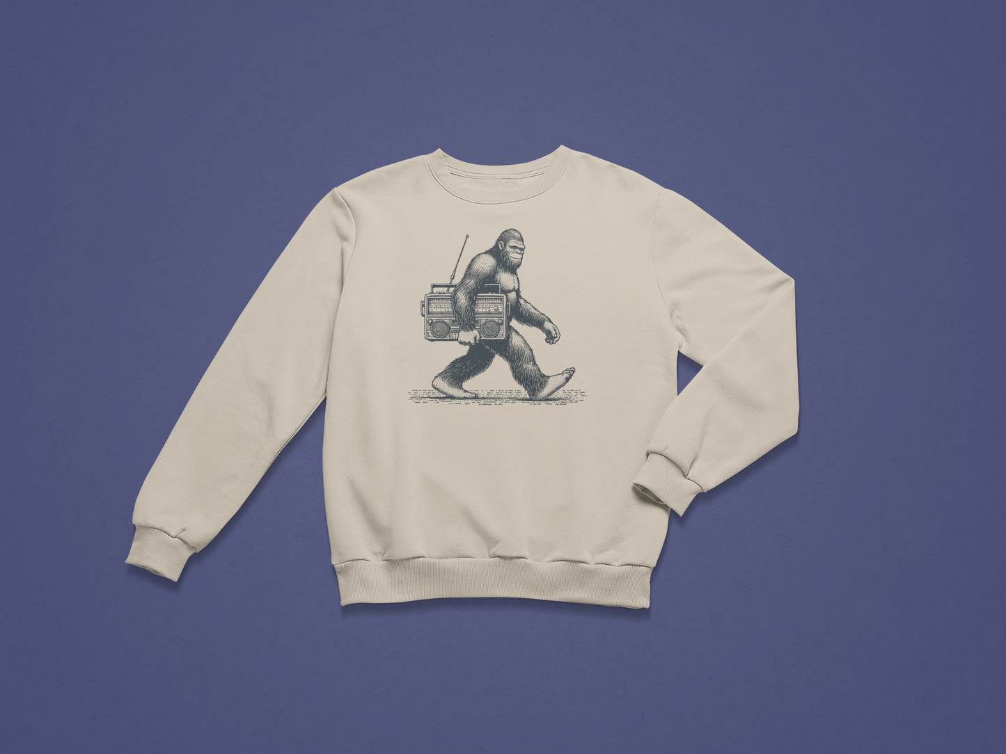 Unleash your inner legend with our "Sasquatch Swagger" crewneck sweatshirt. Featuring Bigfoot hauling an old-school boombox, this shirt is for those who don't just walk - they make the ground tremble. Perfect for the bold and fearless, this shirt combines cryptid mystique with a heavy dose of retro attitude. Own the trail, crank up the volume, and let everyone know you've got the kind of swagger that only a true beast can bring.