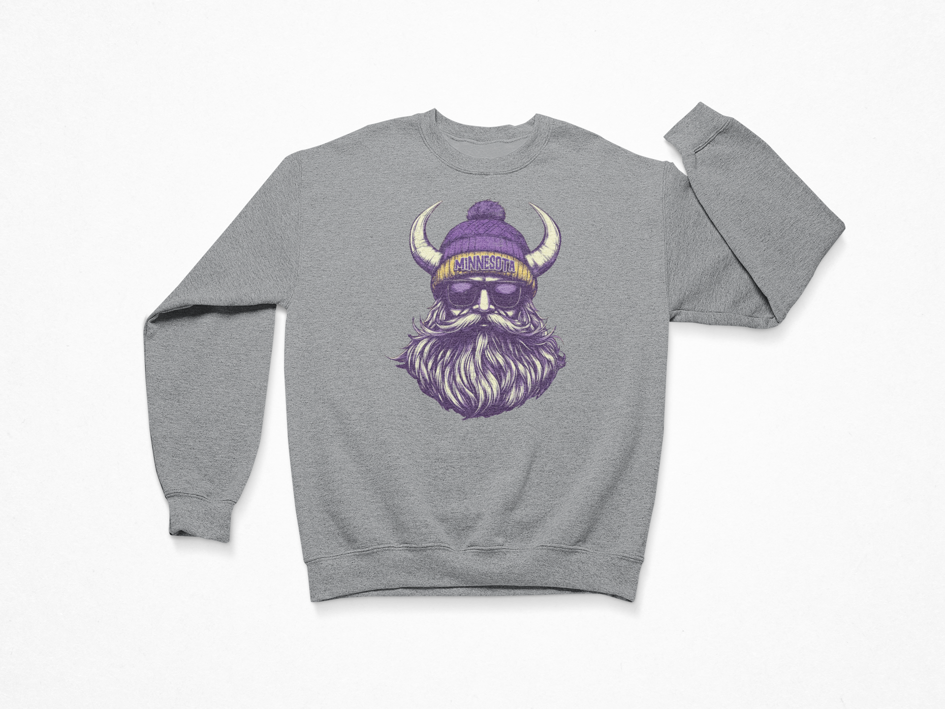 This isn't your average "Sunday Funday" sweatshirt - it's a battle uniform. Built for bone-chilling temps and even colder rivalries, this crewneck packs the spirit of a horned warrior ready for fourth-quarter blood. Whether you're freezing in the stands, screaming at the TV or tailgating like a legend, this crewneck is your armor. Bold. Relentless. 100% Minnesota.