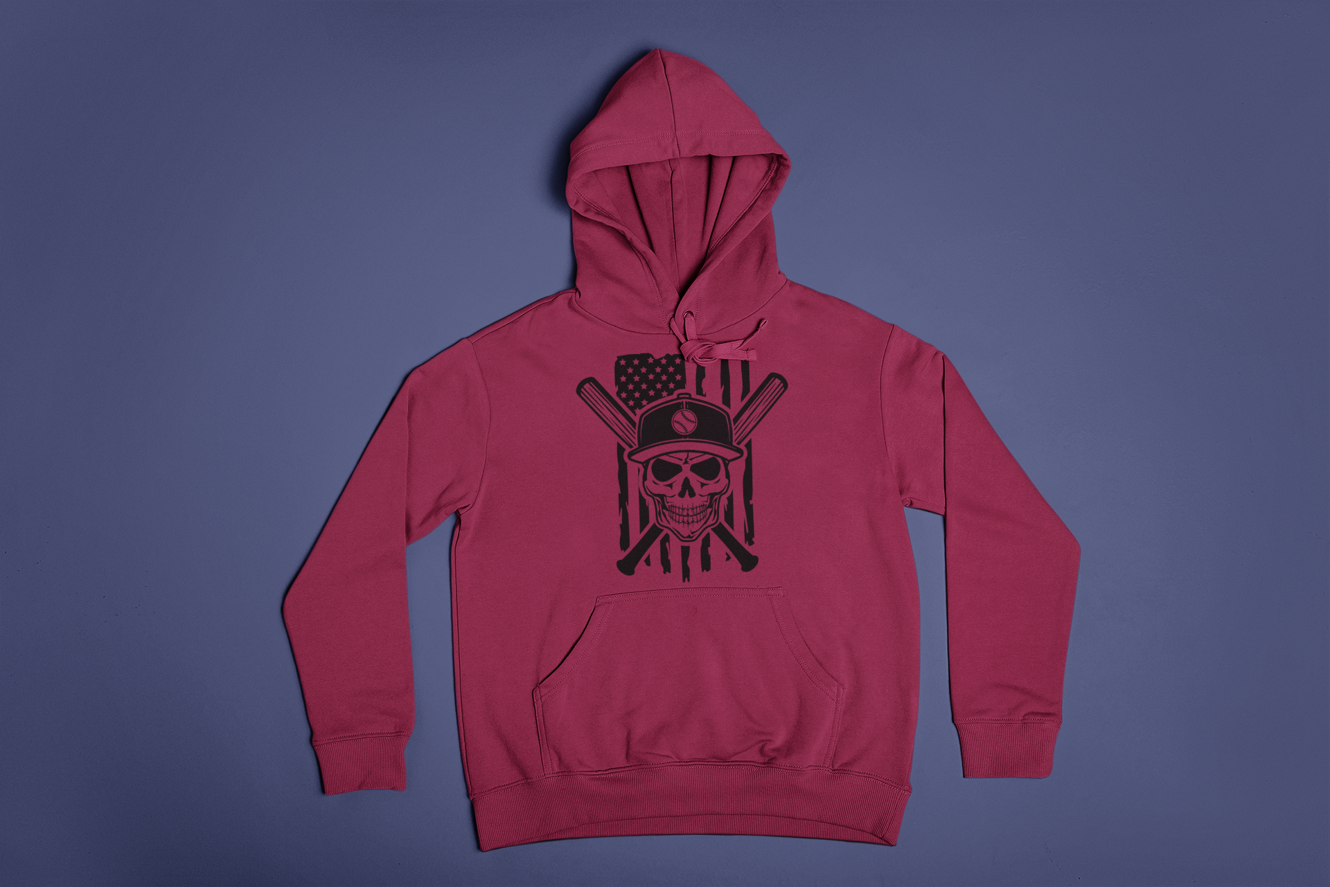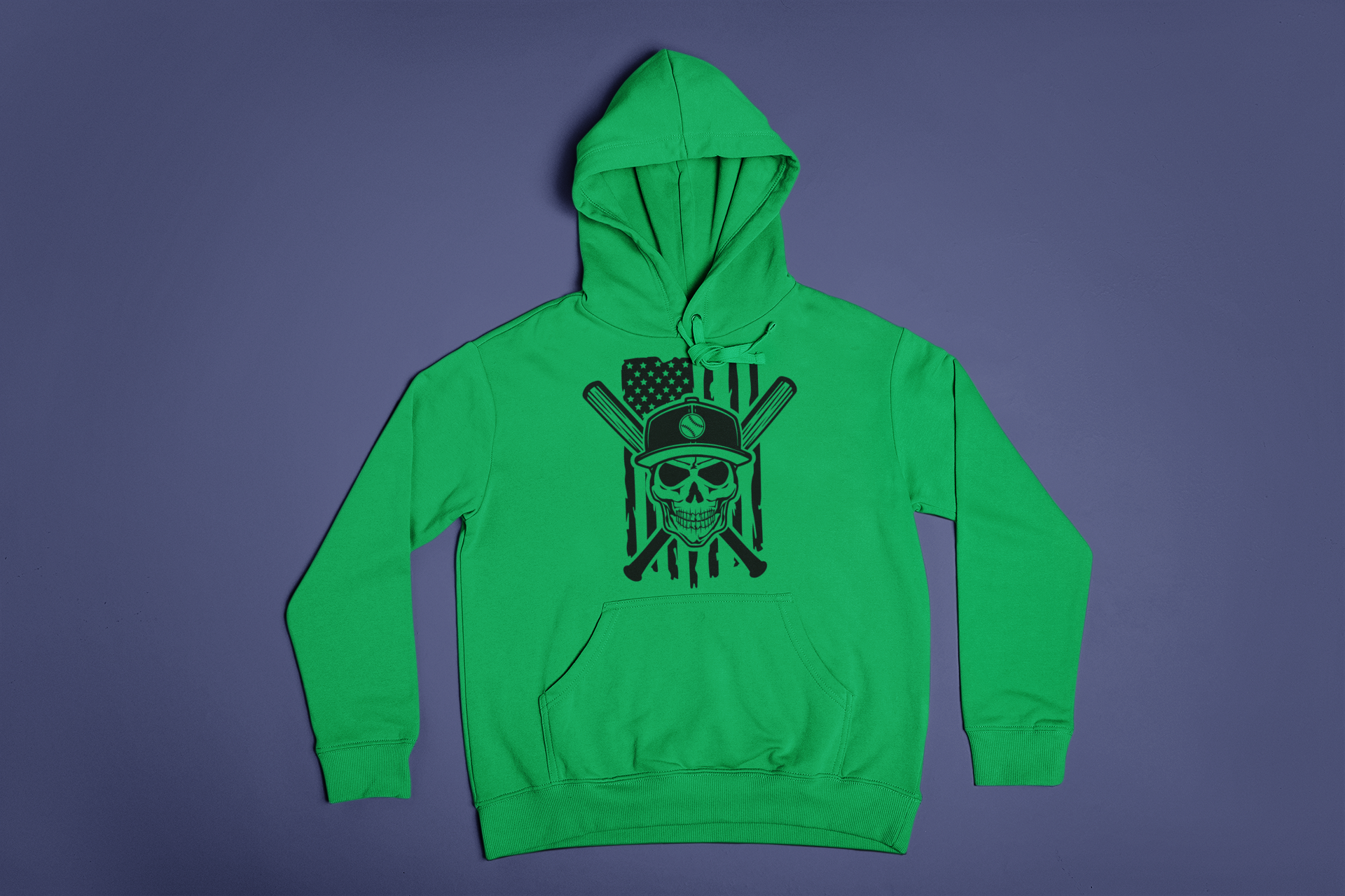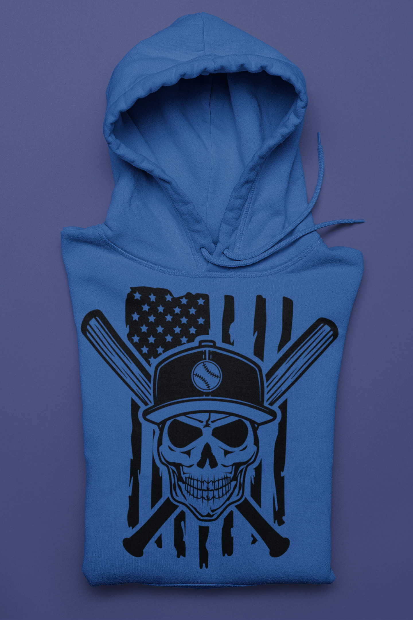 Gear up with unparalleled patriotism and grit with our Skull Strike hoodie. Featuring a skull donning a baseball cap and crossed bats in front of the American Flag, this hoodie embodies the spirit of resilience and determination. Crafted for the bold and fearless, it's more than a hoodie - it's a symbol of unwavering allegiance to the game and the nation. Stand tall, wear it proudly, and let your fierce spirit shine through with every step. Dominate the field of life with the Skull Strike tee from Gritty Gear Company.