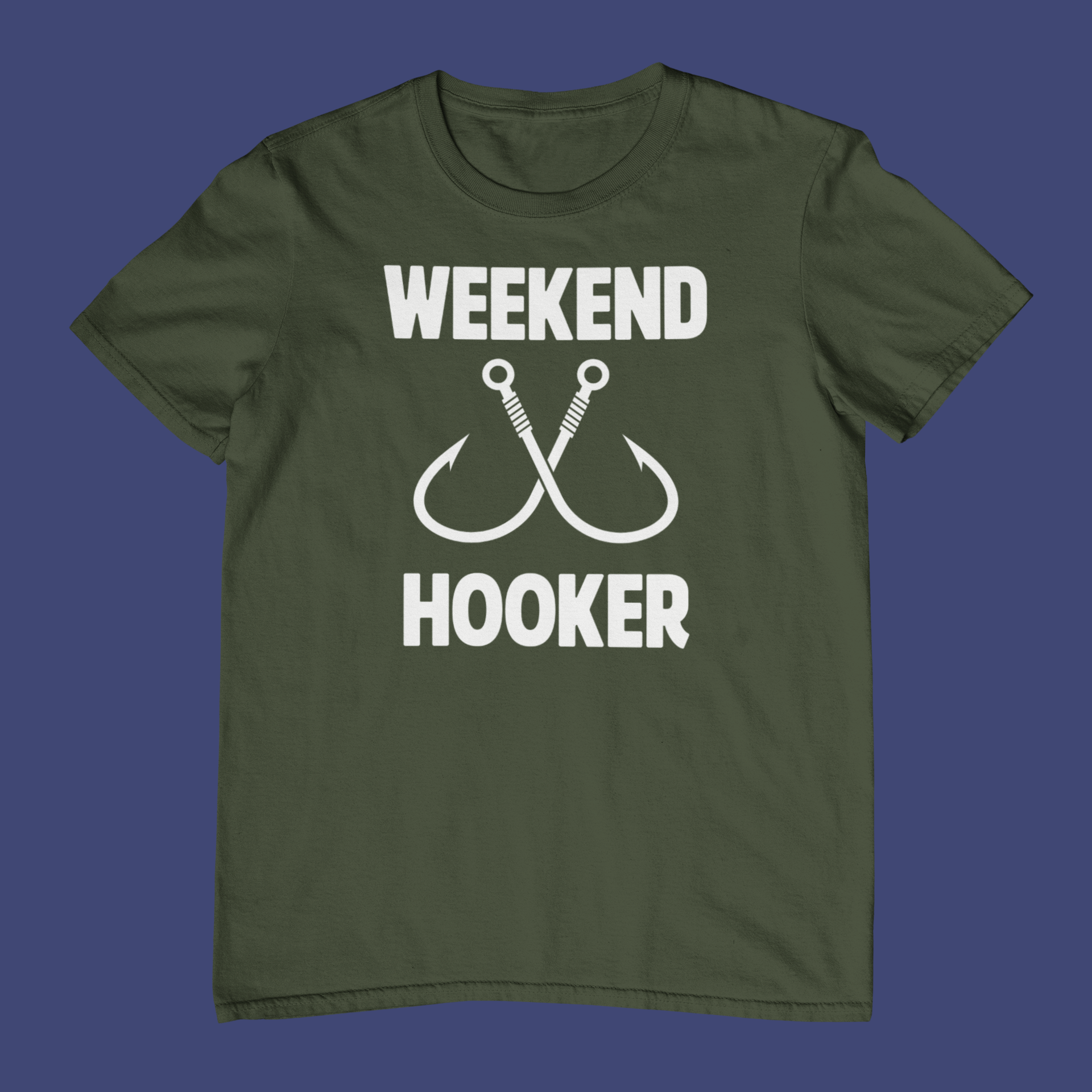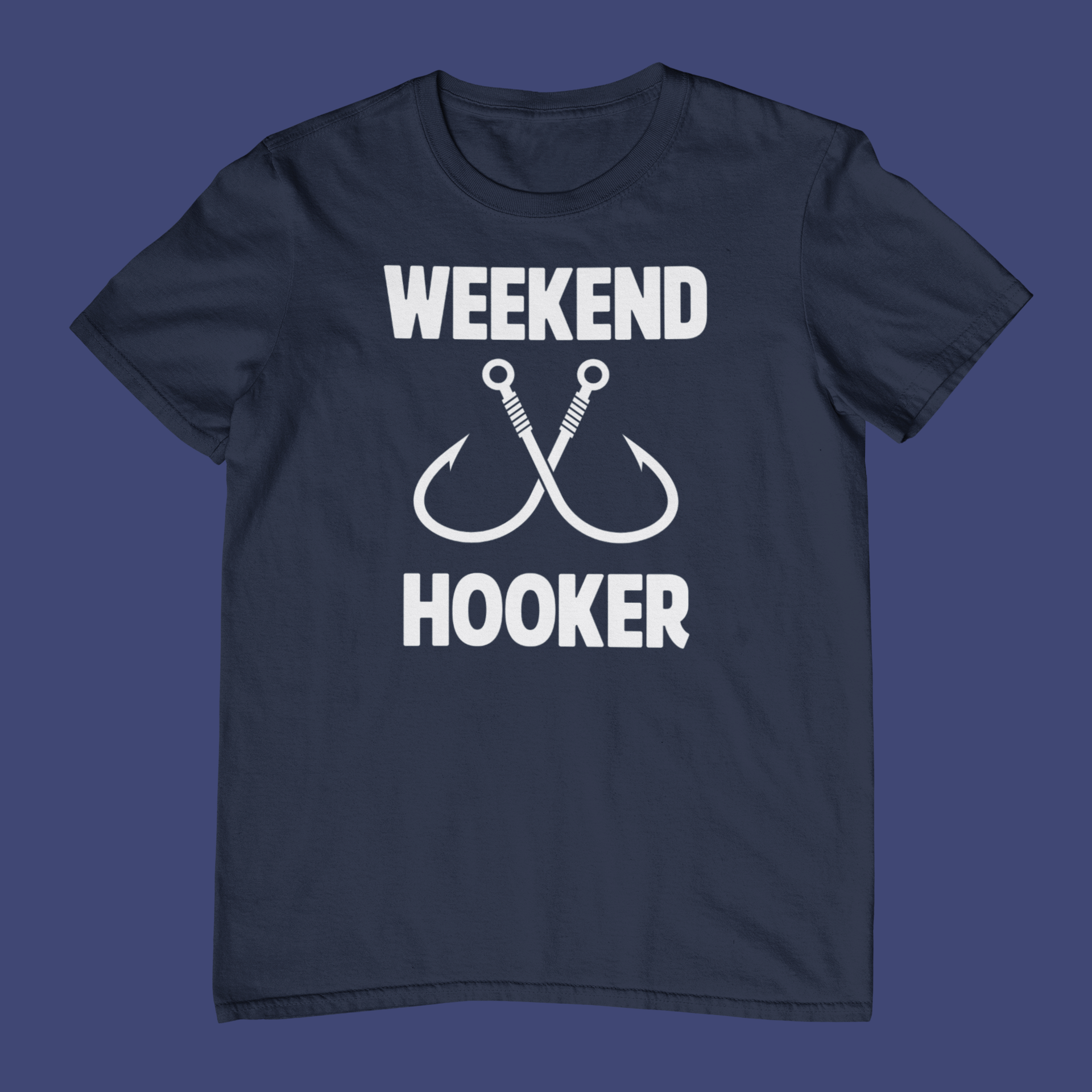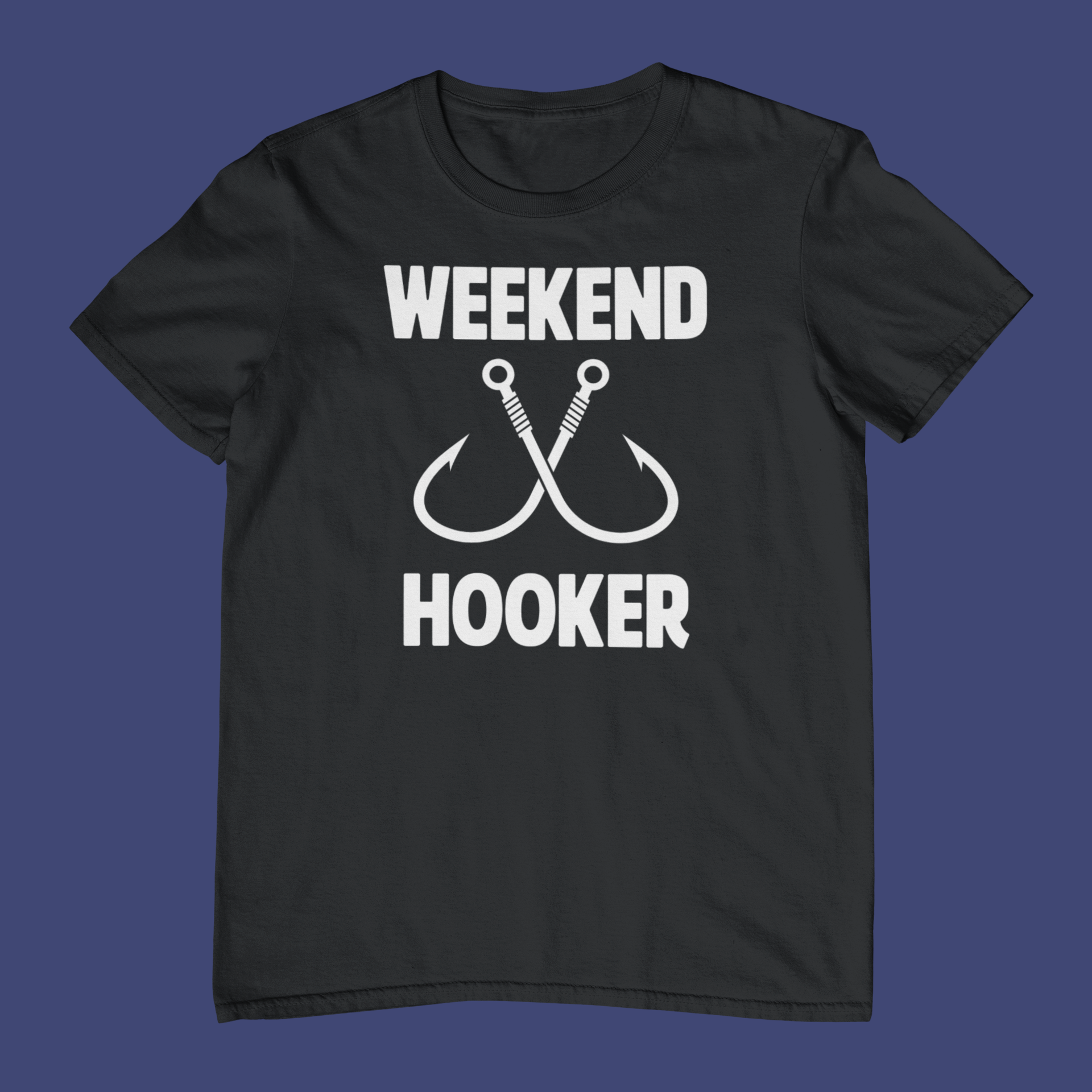Introducing the "Weekend Hooker" t-shirt, because regular weekends are for amateurs. This shirt is for the fearless, the audacious, and the fishing fanatics who know how to work a hook like a boss. So, grab your gear, cast your line, and let the world know that you're a badass angler with our "Weekend Hooker" t-shirt.