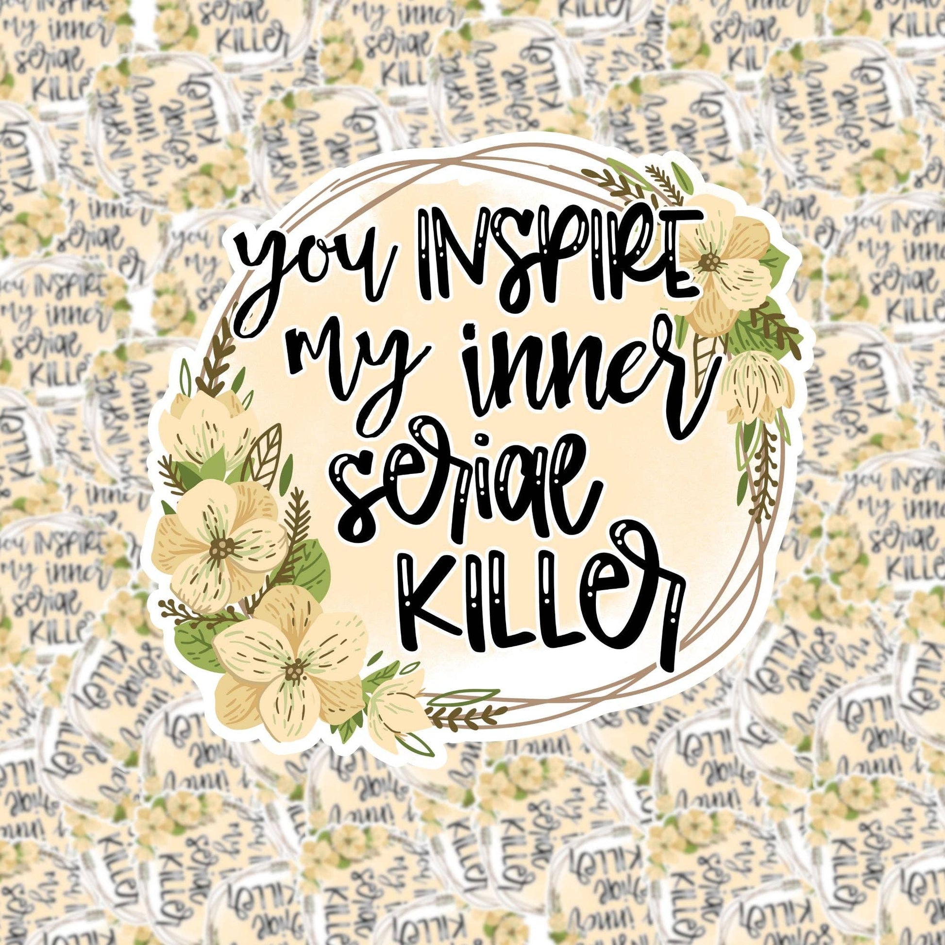 Sweet florals. Dark humor. A gentle reminder to test people's patience responsibly. The You Inspire My Inner Serial Killer sticker is perfect for anyone who survives on sarcasm, intrusive thoughts, and a solid sense of humor.